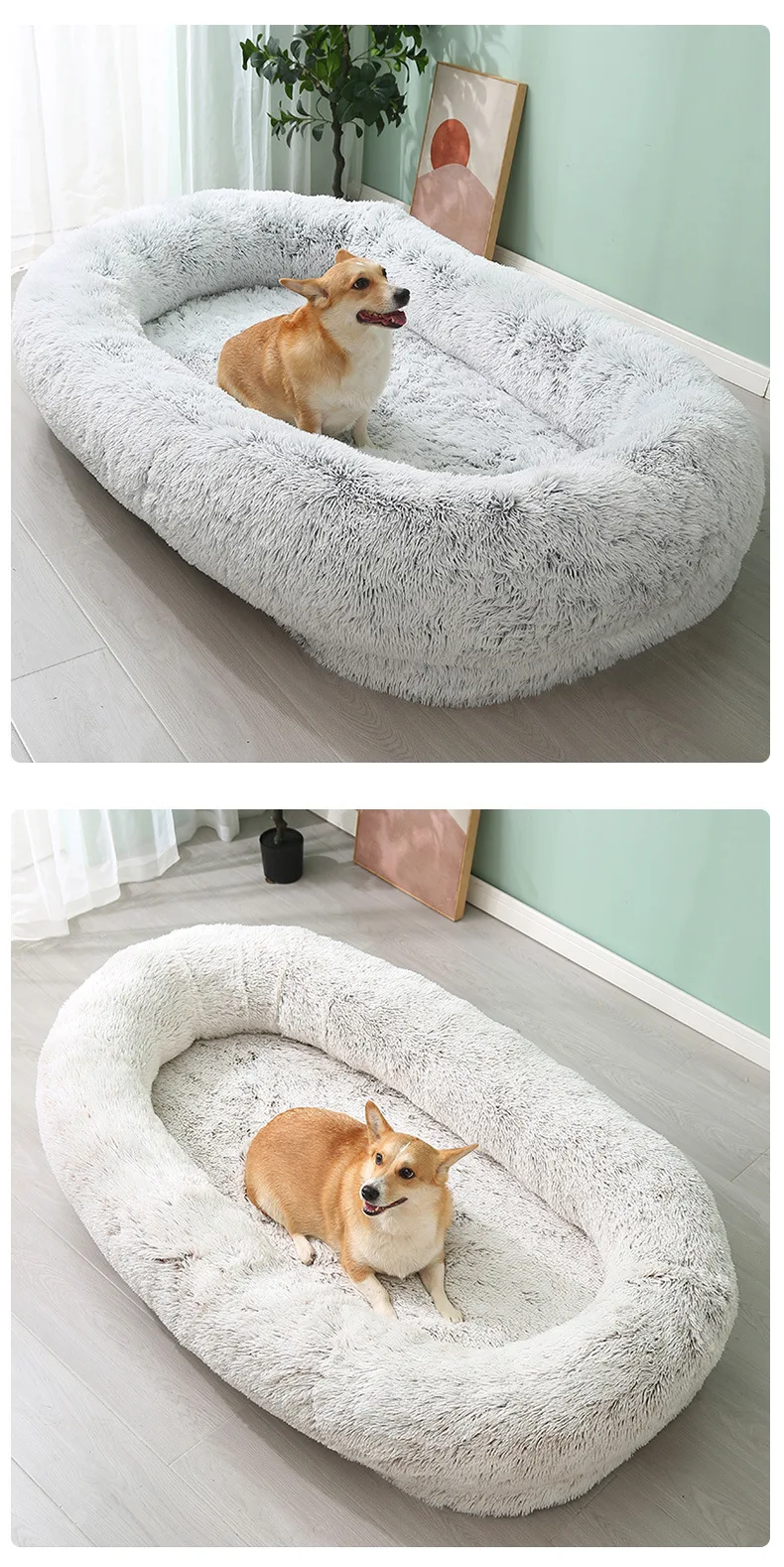 65x37.4x11.8 Inches Human Dog Bed, Detachable Multifunctional Oval Large Dog Bed With Non-slip Design, Human Size Dog Bed
