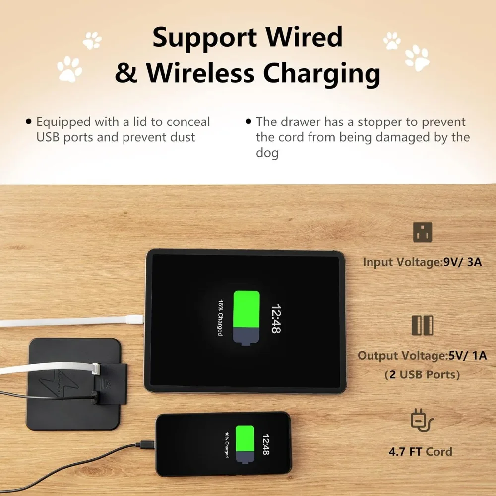- Wired & Wireless Charging Station: The dog crate is equipped with a device that supports wireless and wired charging on the crate tabletop. With 2 USB ports, you can charge mobile devices such as cell phones, tablets, Kindle readers, etc. The wireless charging panel design makes charging more convenient, but only supports charging cell phones with built-in wireless charging function.