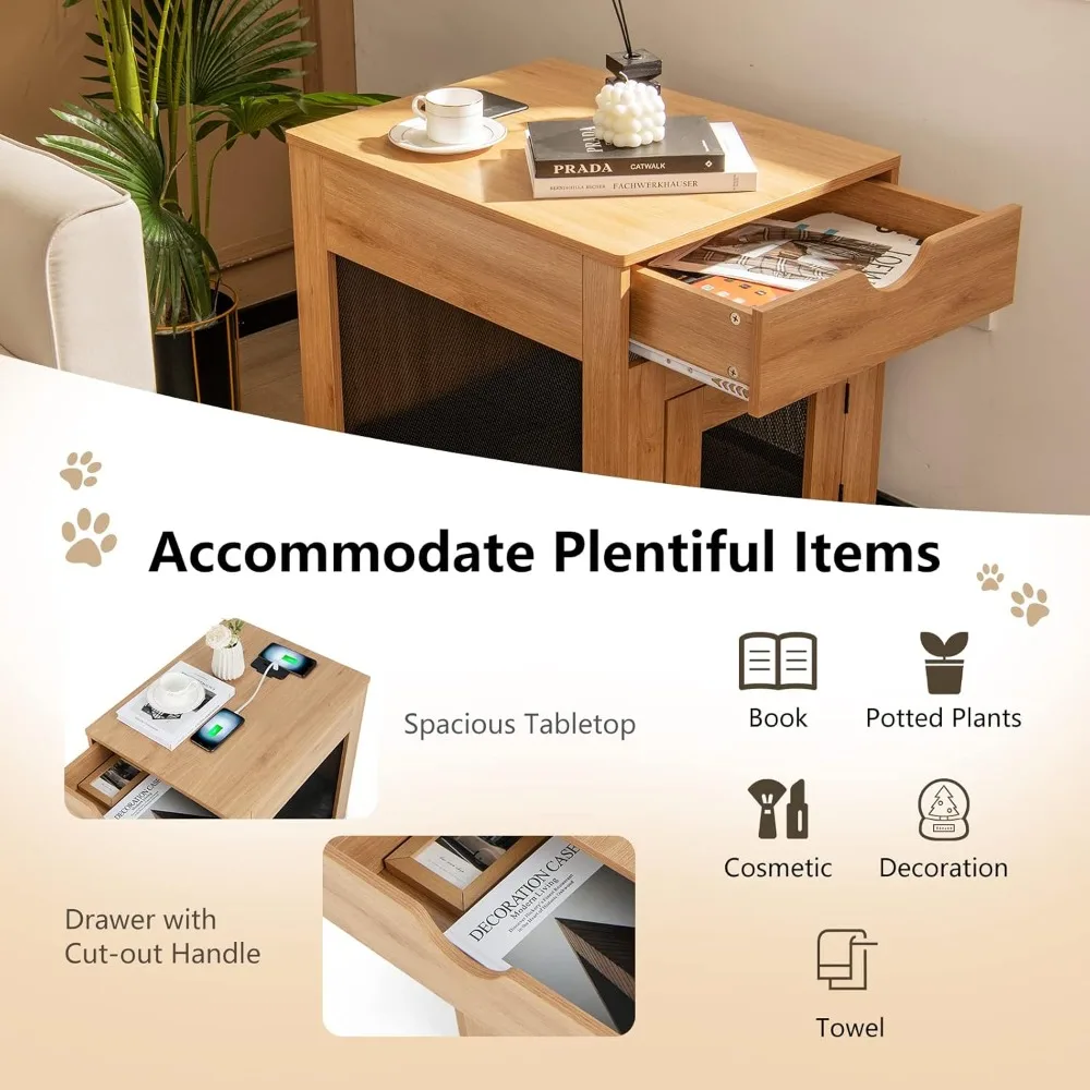 Masterpiece Dog Crate Furniture With Wireless Charging Function & USB Ports, Furniture Style Small Dog Crate End Table